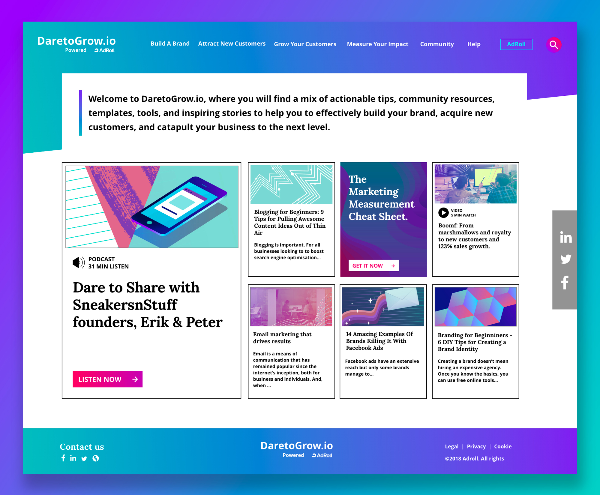 Adroll needed a content partner to help them create a microsite (content hub) and bringing their new brand communications strategy to life through truly audience-focused content.