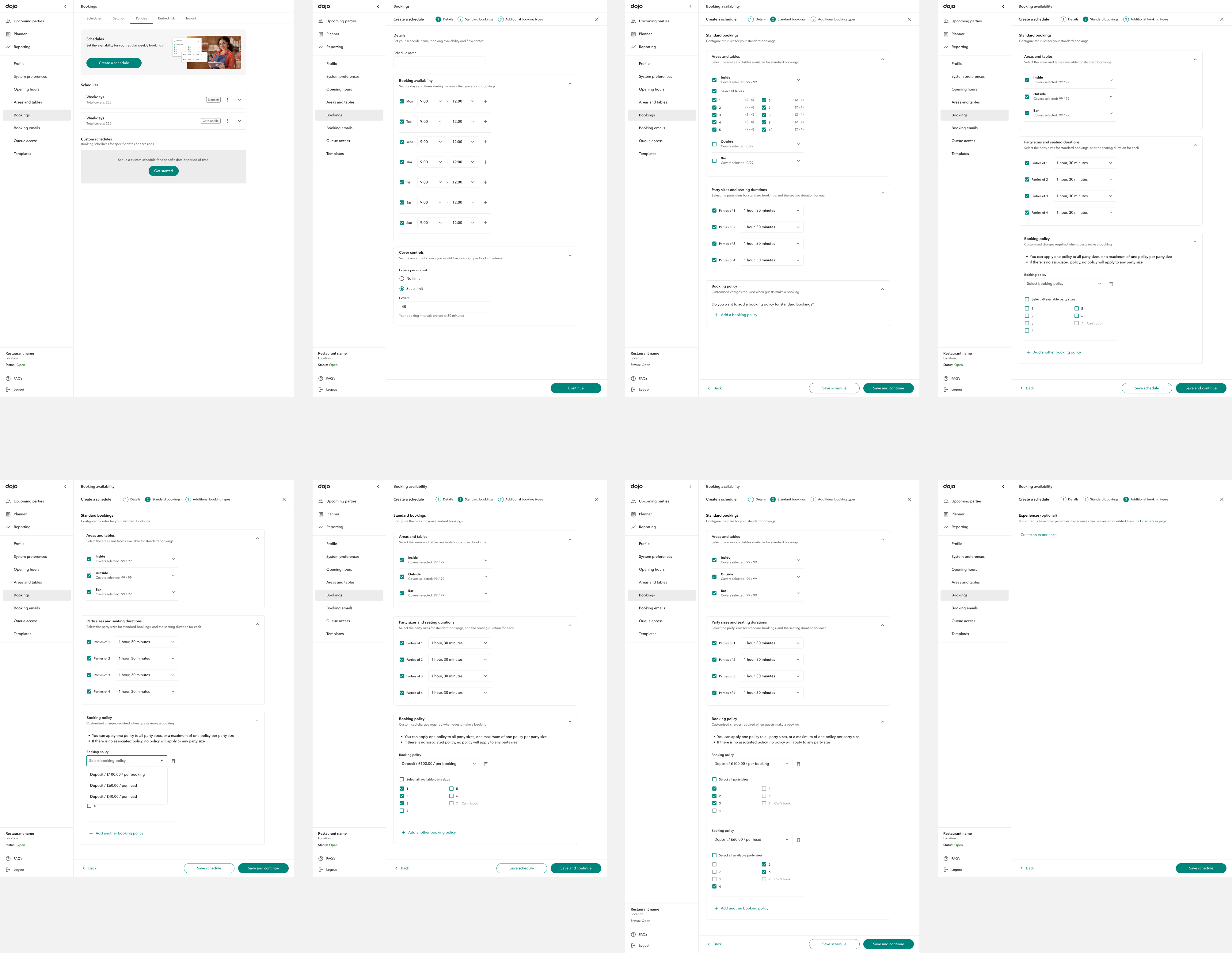 A lot of thinking has been put into understanding where “Booking policies” should have been placed within the existing product. Should have been a stand alone new feature, or be part of the existing settings? And if so, how would they integrate with the existing flow? Would they become a blocker for future features?