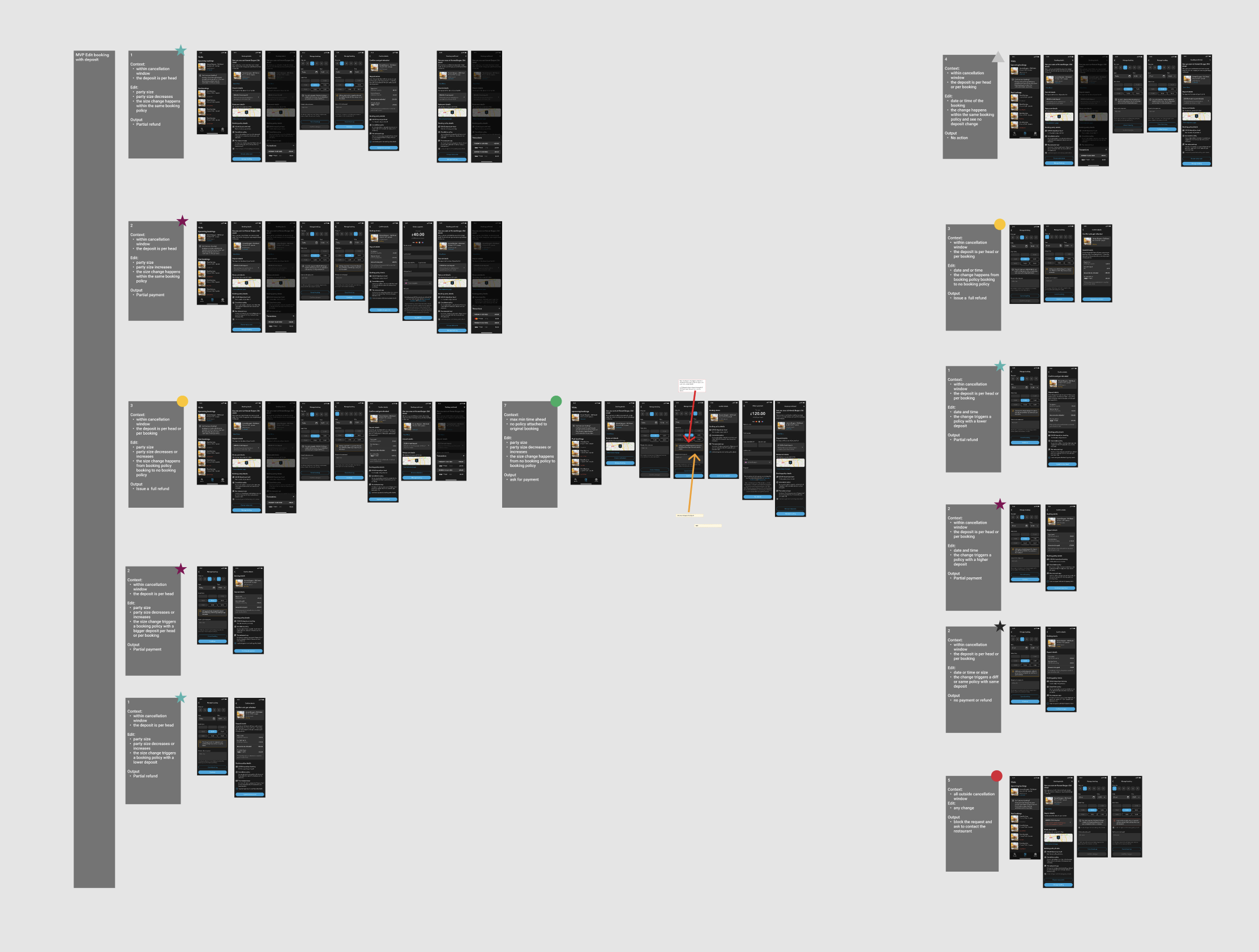 As obvious as it might sound, visualise the user journeys through diagrams is not just an exercise for product designers. It’s a great tool that really helped the 3 amigos to highlight possible blockers, prioritise for the MVP and uncover questions we didn’t think about. The most complicated paths to untangle were those related to “edit a booking”.